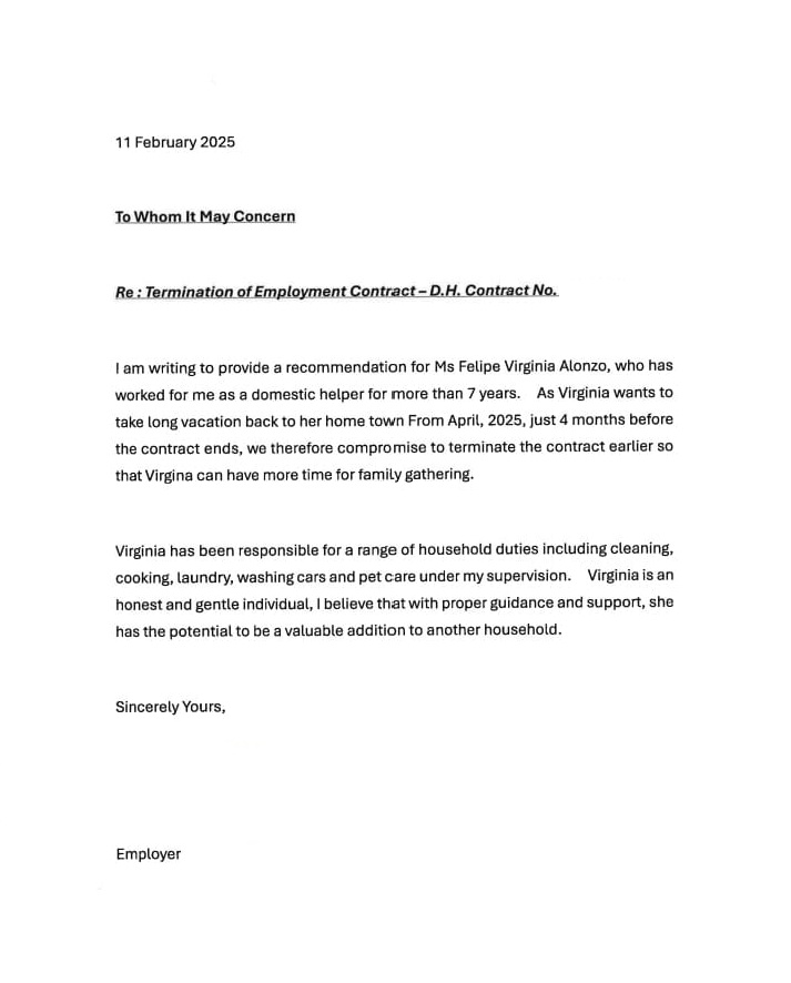 Hello! I am Virgie A.F., age 46, single mother. I am looking for a new job as a domestic helper. I am trustworthy, kind and patient. I'm looking for a new job.