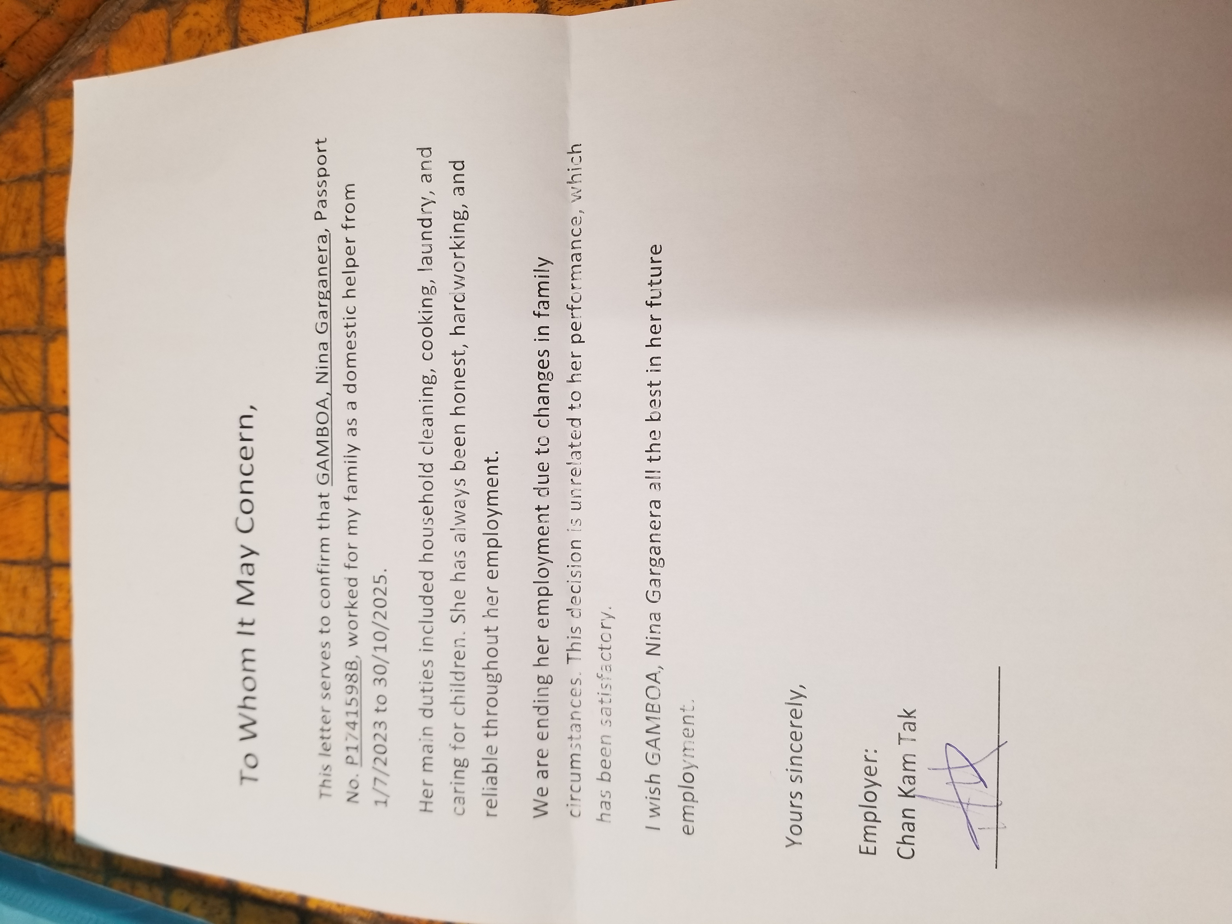 Hello I'm Nina G., a mother of 2 young adults. I've been working here in Hong Kong for 10 years now mostly taking care of children, cooking and doing house chores. I am a happy person and can work with less supervision from my boss. I love kids, cooking, baking and also had a chance once to take care of dogs and a cat. I am very positive person in many ways , I don't engage with negative people around and I can say I am hard working and trustworthy . Thank you so much!