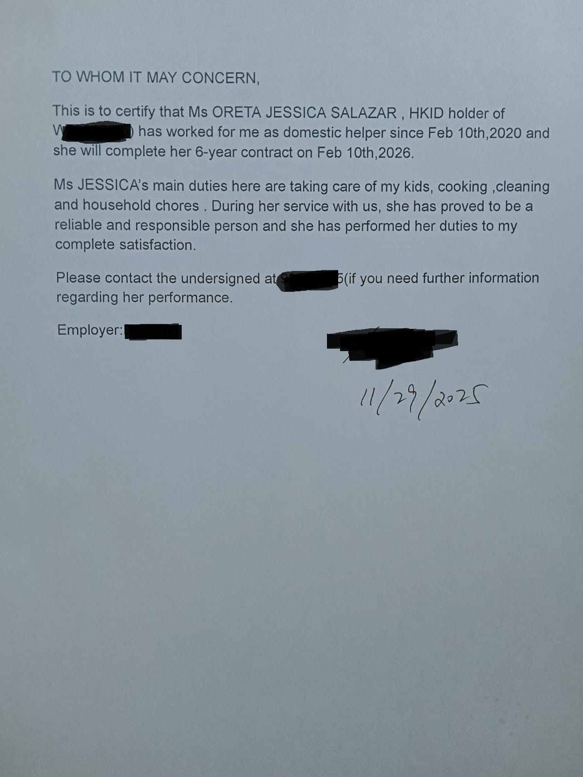 I am looking for a new employer. I have been working here in Hong Kong for 21 years. I am a responsible person.