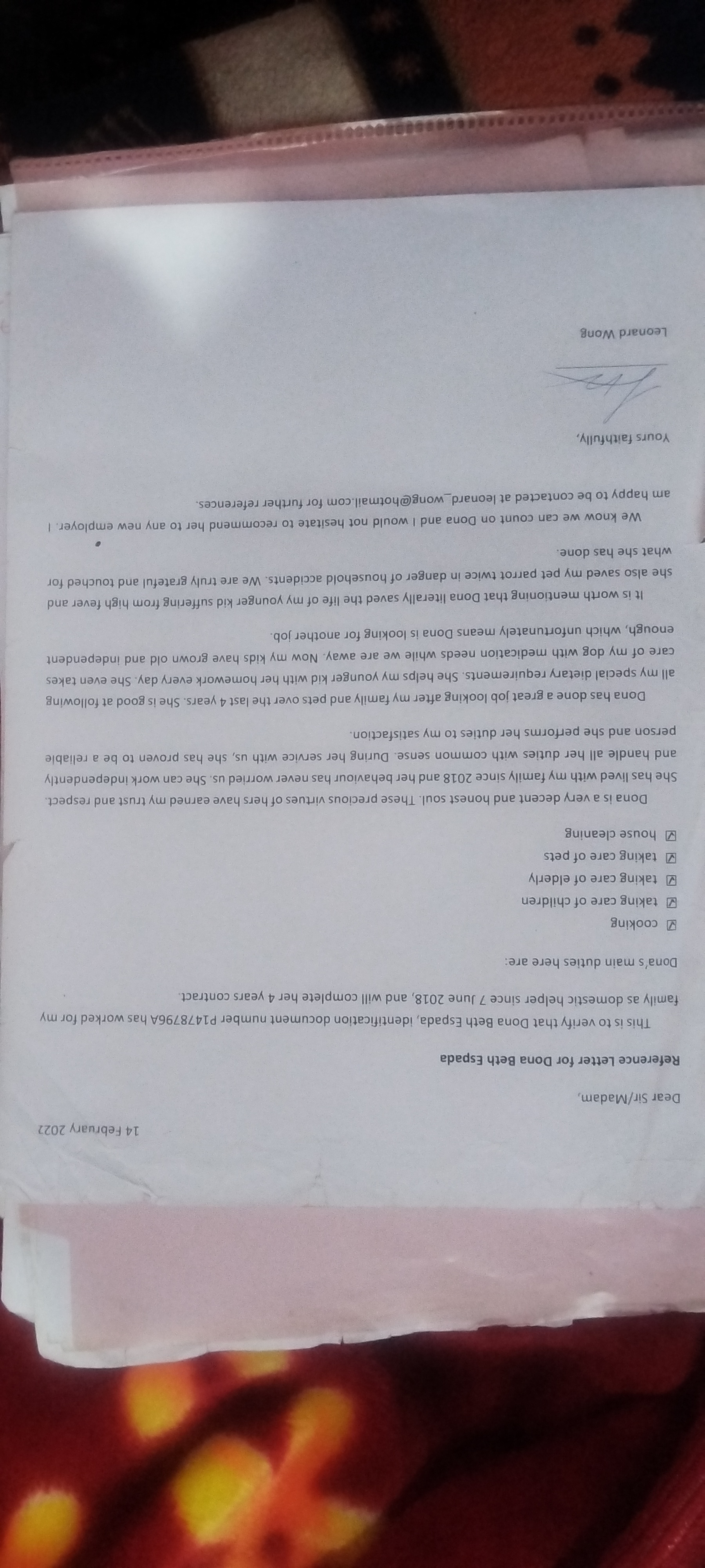 Hi ma'a/Sir,you can call me Dona, I worked there in Hong Kong 2017-2022 but my employer migrated in United Kingdom that's why they did not renew me. so I came back home untill now taking care of my kids.