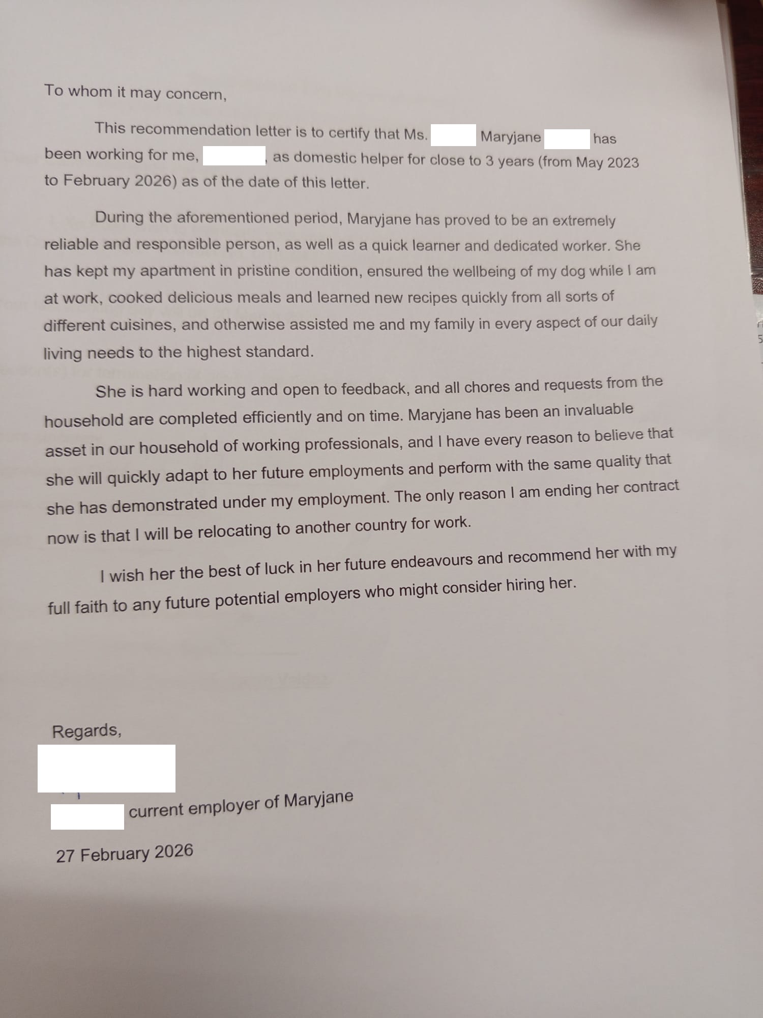 I'm a trustworthy, honest, hardworking person. I'm willing to follow the rules of my Employer. I love kids and I also love pets. I can do household chores like cooking, cleaning, laundry, ironing, etc.