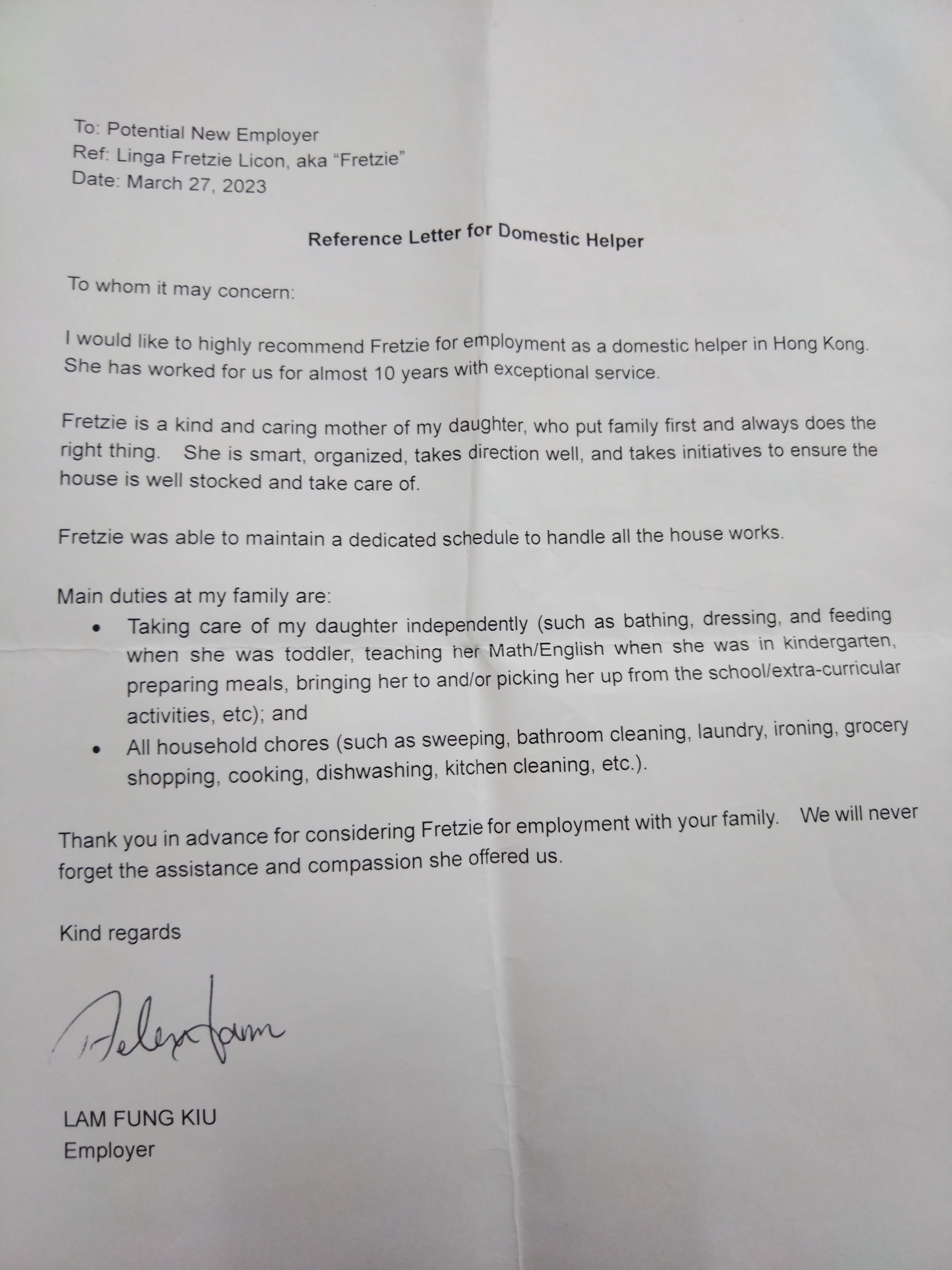 I am 45 years old and a college graduate with a Bachelor of Science in Education. I love teaching and playing with children, and I enjoy cooking both Chinese and Western food. I can work independently and manage household tasks such as cleaning, marketing, and cooking. I am dedicated to caring for kids and enjoy spending quality time with them through playdates.